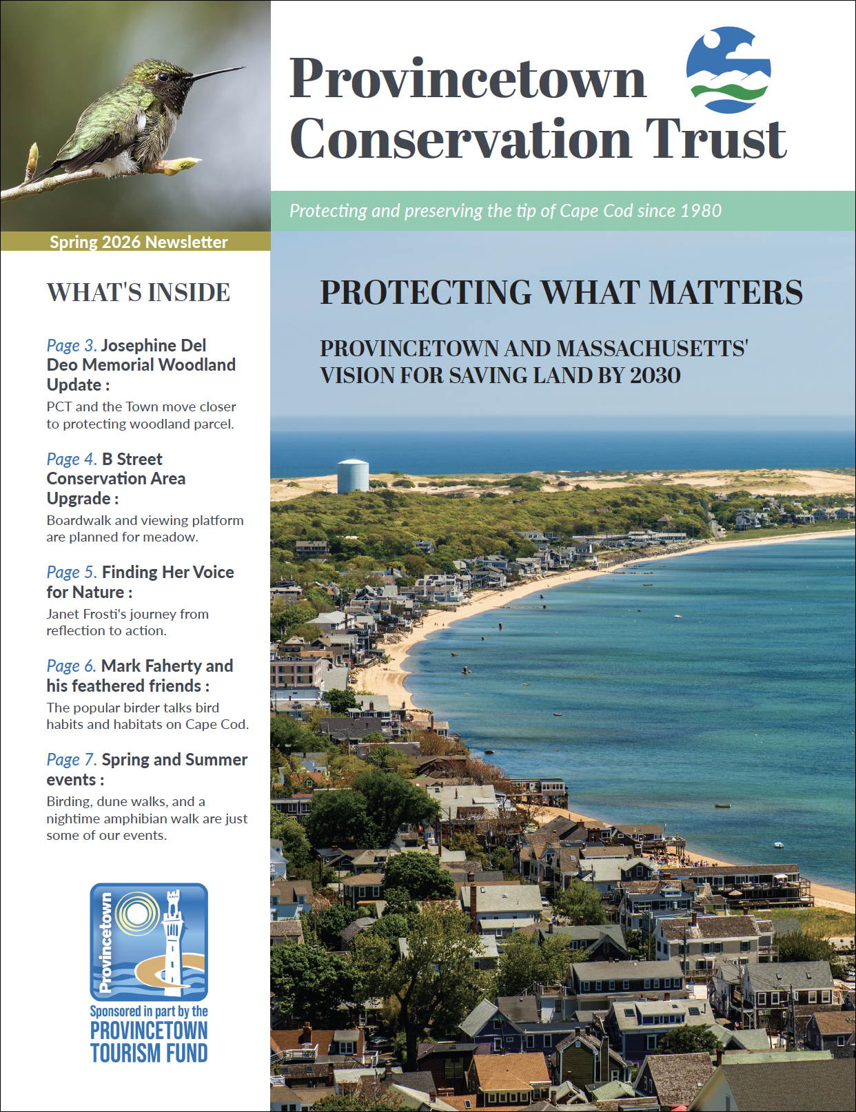 Widespread residential development, in the form of new condominiums and subdivisions, has replaced much of Provincetown's natural lands. Yet the Provincetown Conservation Trust exists because so many people have the will and the desire to protect our dunes, forests, woods, bogs, marshes, thickets and swamps, and all the creatures that depend on them.
